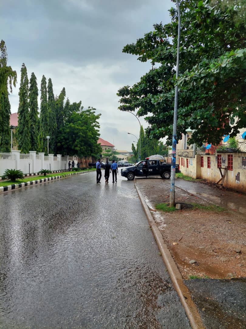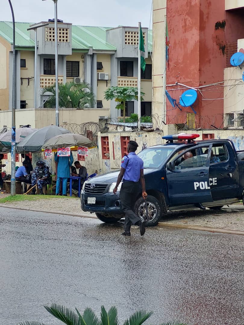 Following a security report that certain persons had been mobilised to stage demonstrations at the party secretariat on Monday, the police team numbering over 30 had strategically positioned themselves within the secretariat along Blantyre street, Wuse 2, Abuja.